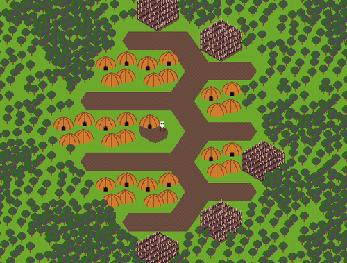 They live in small villages, centered around a Totem, which appears to be a giant version of their masks. This Totem is believed to be a representation of their god, and is essential to unifying the aggressive and erratic Masklings into something resembling a society. These villages consist of a few clusters of tents linked by a haphazard maze of streets, and interspersed with what appear to be farms.